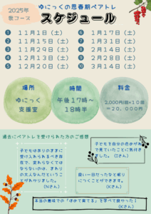 思春期版(小4~高校)は、11月1日(土)よりスタートし、約2週間に1度、土曜日の17時~18時半に行います。