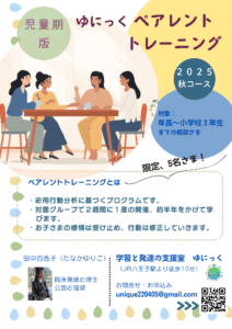 また、今回「ゆにっくペアレントトレーニング」に関する動画を作成致しました。ご希望の方にはデータをお送りしますのでお知らせください。